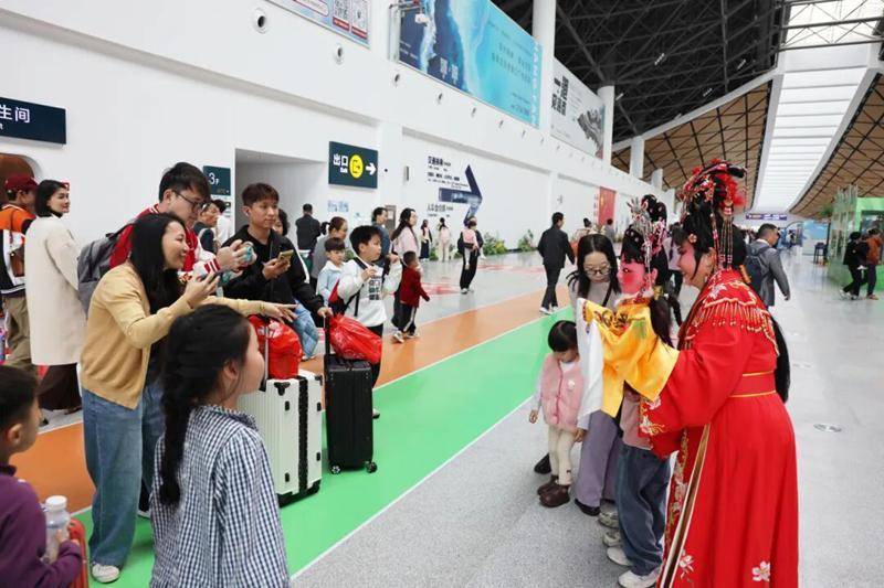 2月13日中午,“海口欢迎您”春节迎宾快闪在到达厅出口活力上演。菠萝乐队以一首轻快串烧点燃现场,海口市群众艺术馆群星青年舞团献上《天涯共锦绣》《帅帅自贸港》等原创舞蹈,公仔戏《郎君多潇洒》等非遗表演也让游客近距离感受琼岛文化魅力。